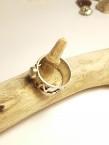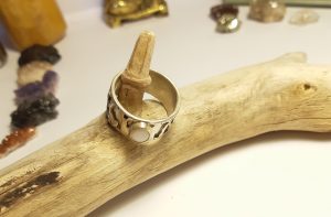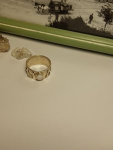 Bague en argent « art nouveau ». Cette jolie bague est réalisée avec un anneau double travaillé. Une pierre en opale complète ce bijou. La taille de cette bague est de 59….