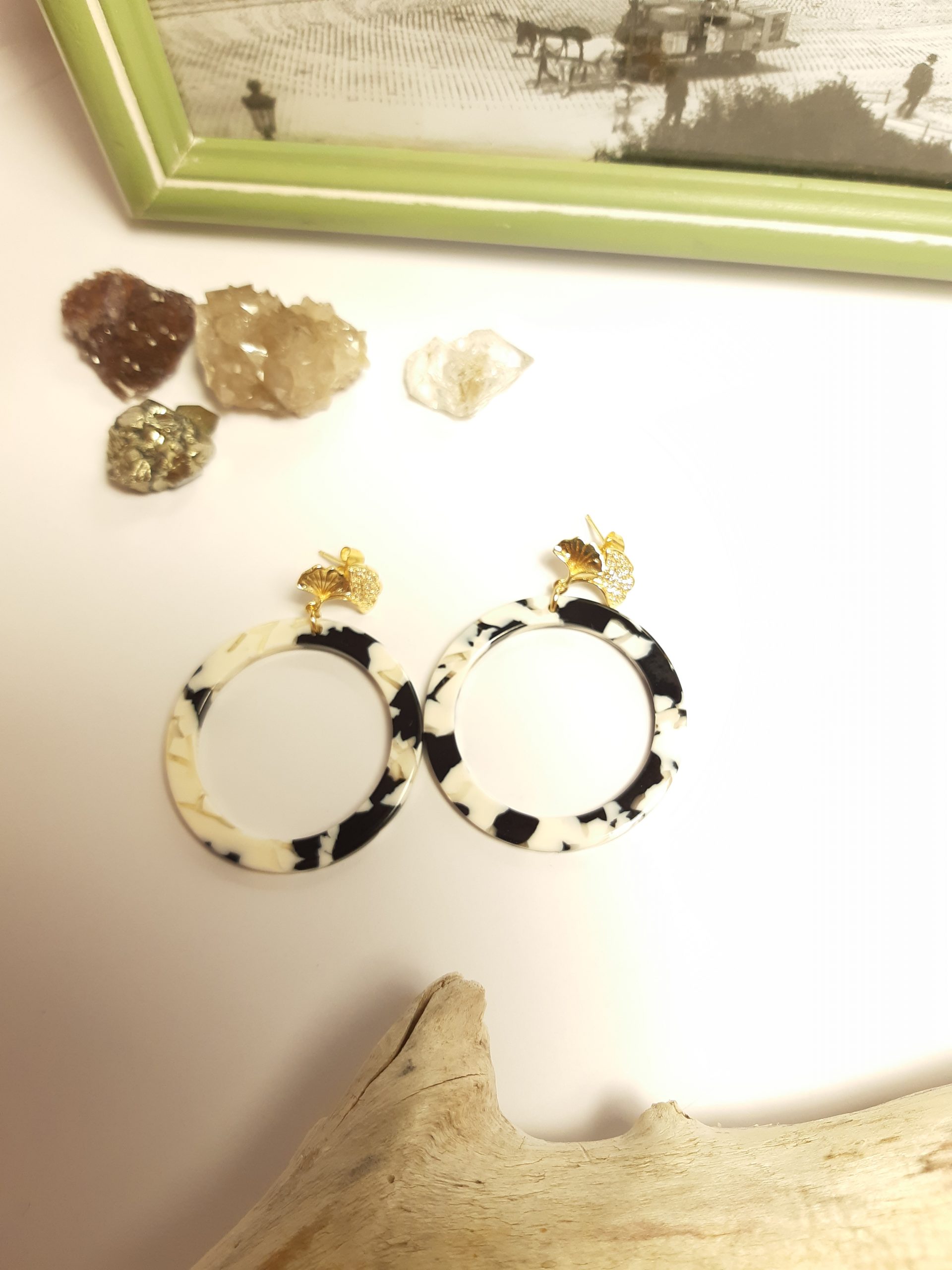 Ces Boucles d’oreilles sont proposées avec une monture GINKGO à clou plaquée à l’or fin.